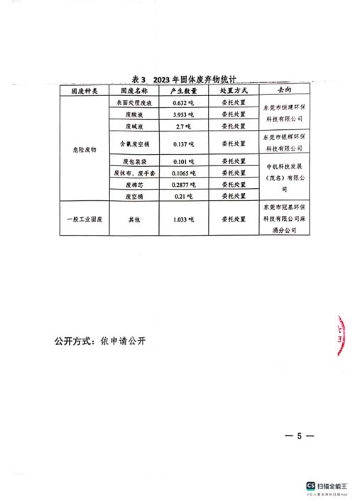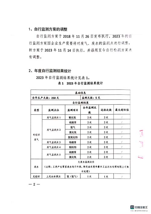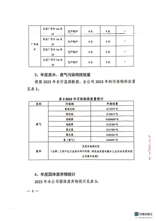 東莞市飛揚五金科技有限公司2023自行監測年報
