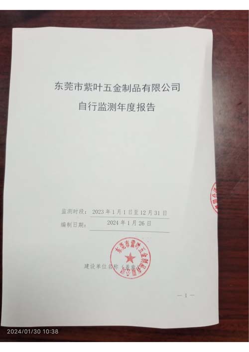 東莞市紫葉五金制品有限公司自行監(jiān)測年報2023