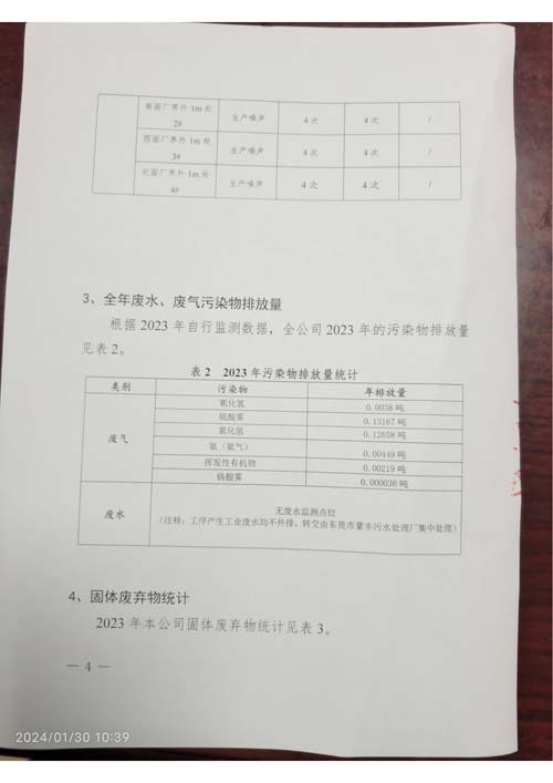 東莞市飛揚五金科技有限公司2023自行監(jiān)測年報