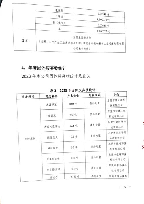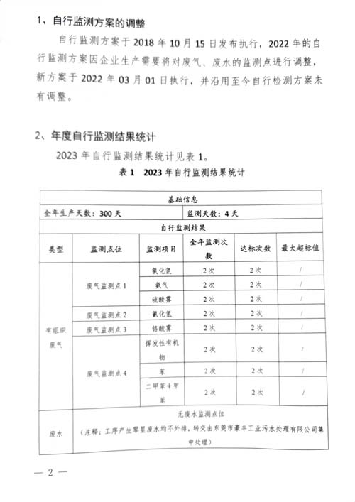 東莞市永捷表面處理科技有限公司2023自行監測年