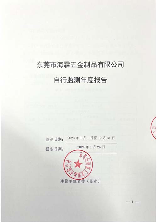 東莞市海霖五金制品有限公司自行監(jiān)測(cè)年報(bào)2023年