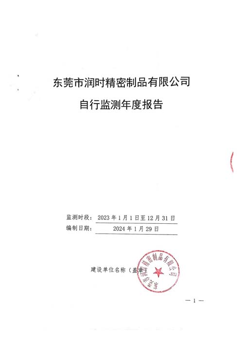 東莞市潤時精密制品有限公司自行監測年報2023年