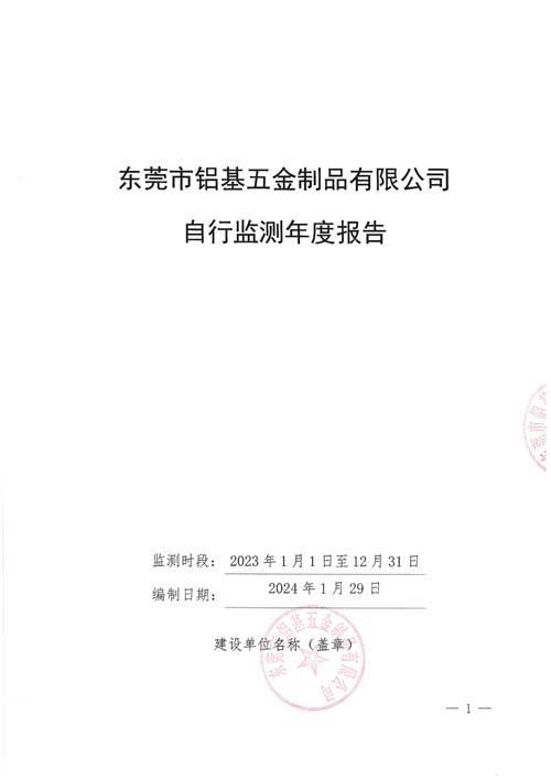 東莞市鋁基五金制品有限公司自行監(jiān)測年報2023年