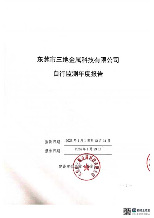 東莞市三地金屬科技有限公司東莞市自行監測年