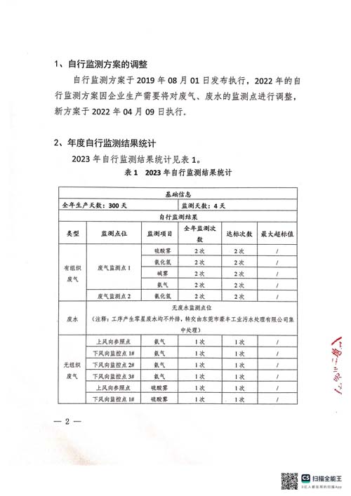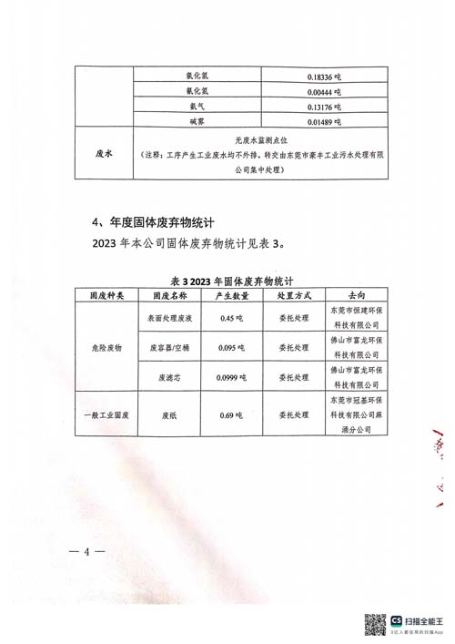東莞市協琪五金制品有限公司自行監測年報2023年
