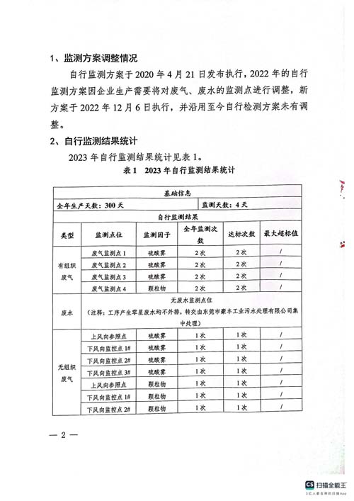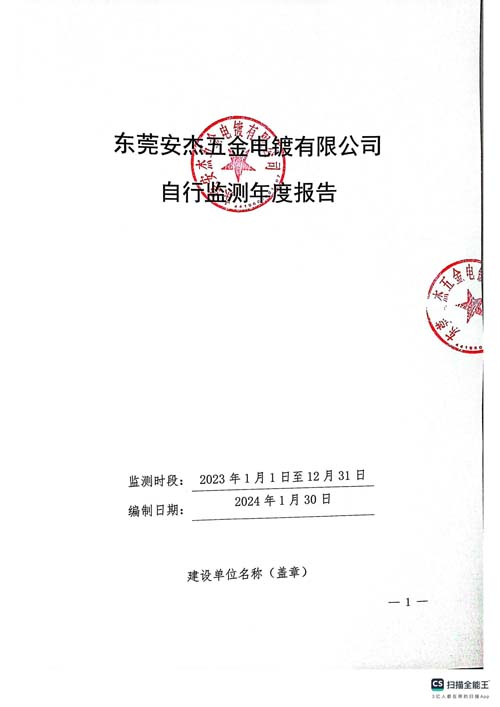 東莞安杰五金電鍍有限公司自行監測年報2023年