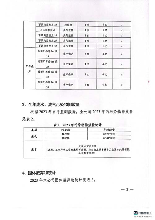 東莞市協琪五金制品有限公司自行監測年報2023年