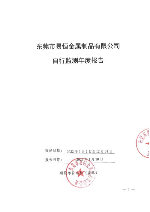 東莞市易恒金屬制品有限公司自行監測年報2023年