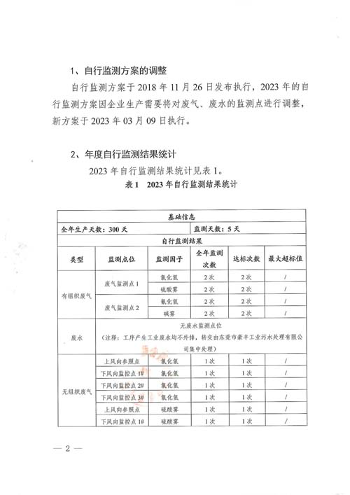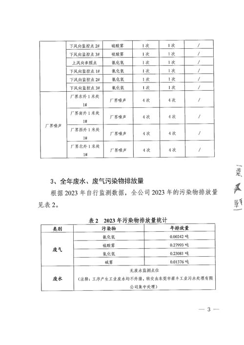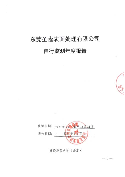 東莞圣隆表面處理有限公司自行監測年報2023年