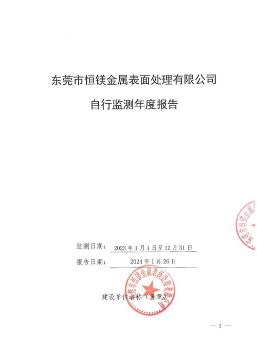 東莞市恒鎂金屬表面處理有限公司自行監測年報