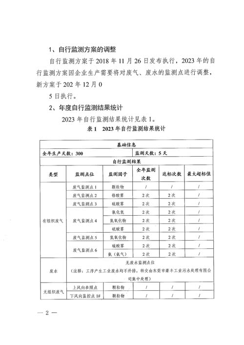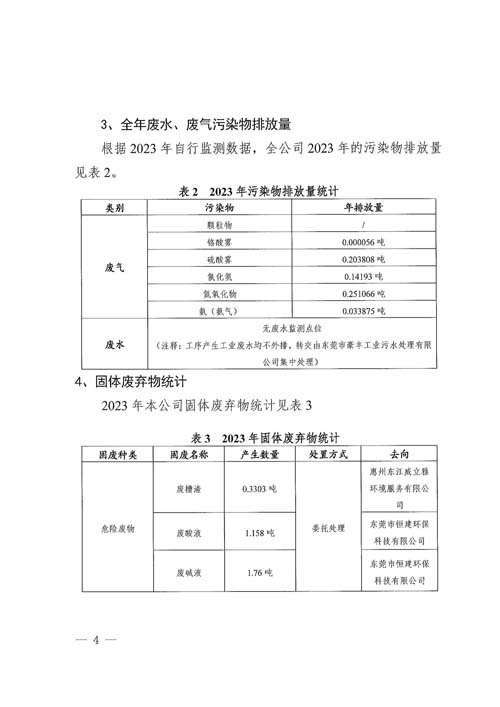 東莞圣隆表面處理有限公司自行監測年報2023年
