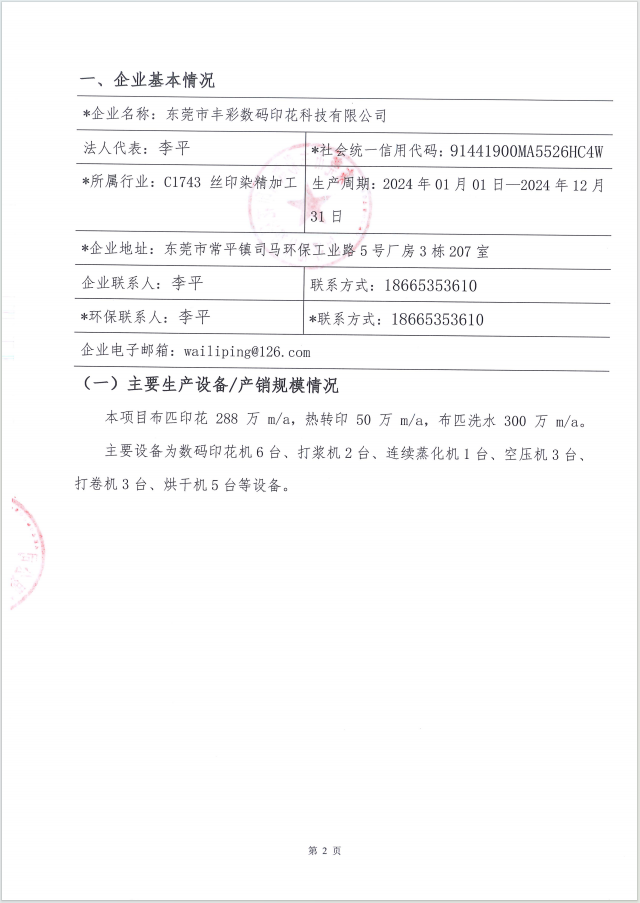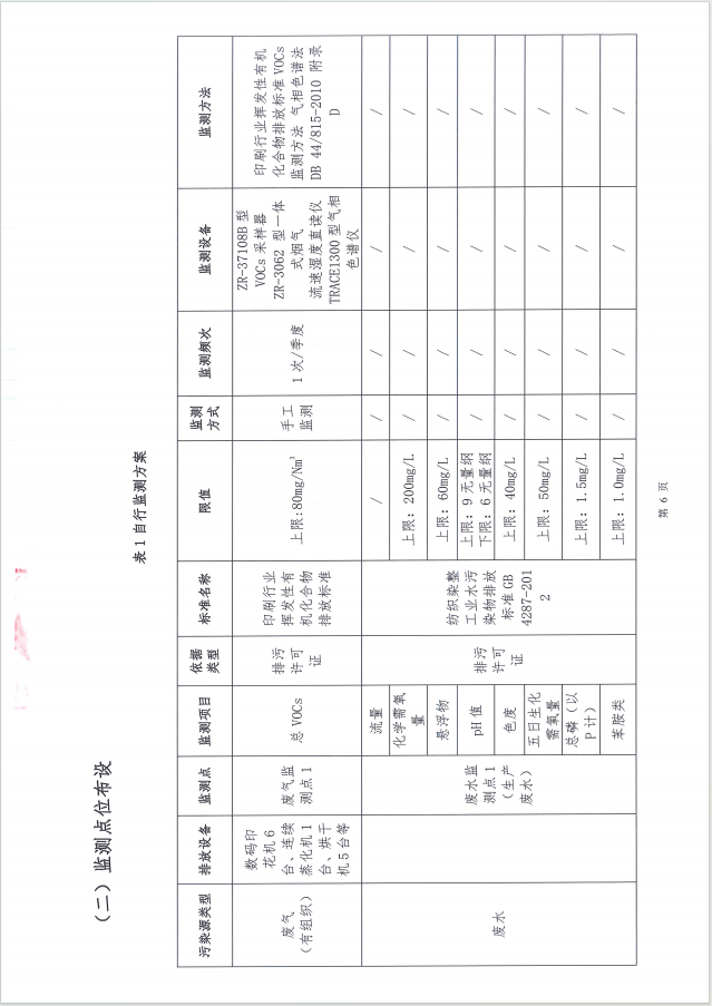 關(guān)于東莞市豐彩數(shù)碼印花科技有限公司自行監(jiān)測