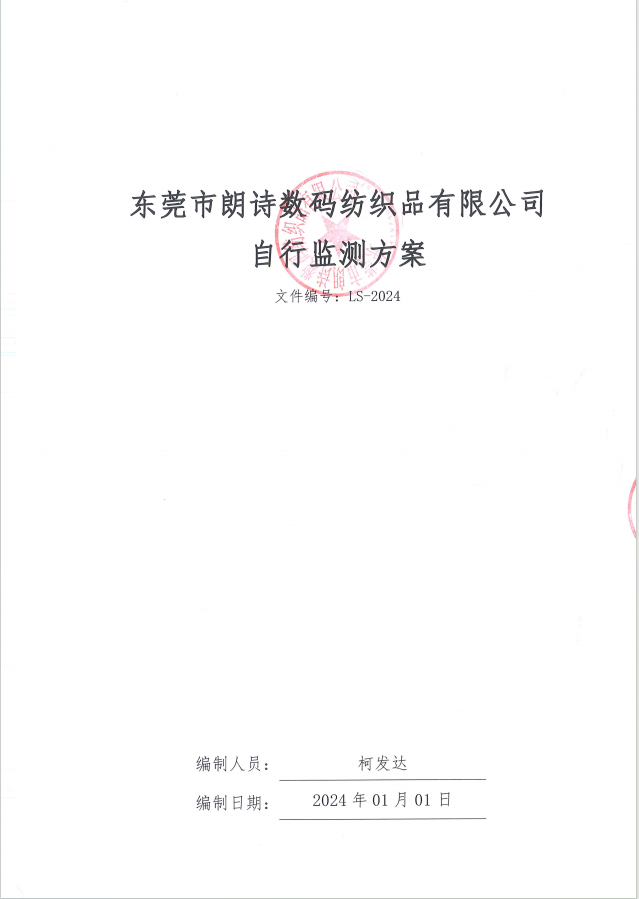 關于東莞市朗詩數碼紡織品有限公司自行監測方