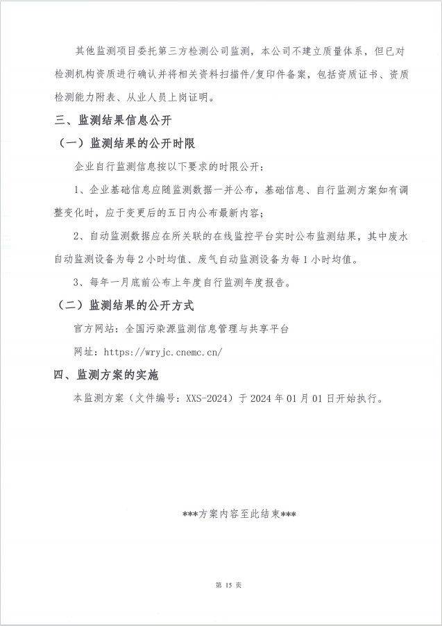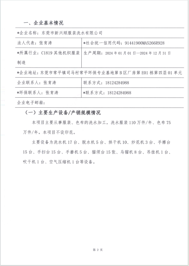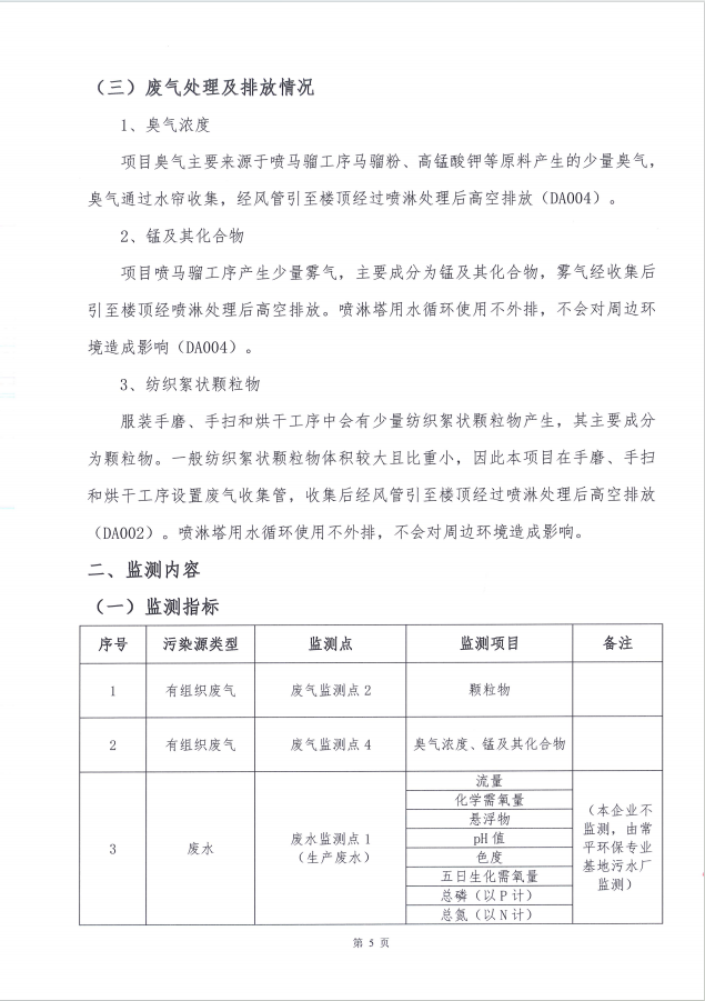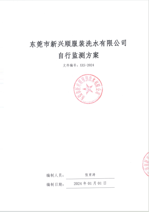關于東莞市新興順服裝洗水有限公司自行監測方