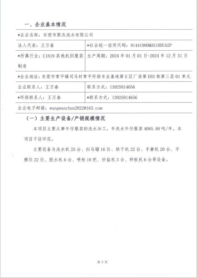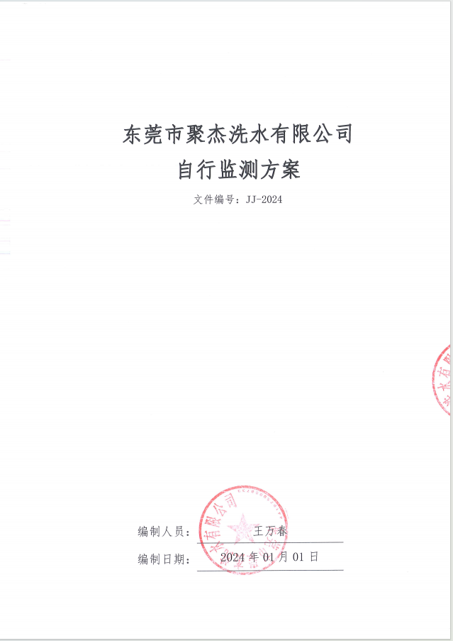 關(guān)于東莞市聚杰洗水有限公司自行監(jiān)測方案