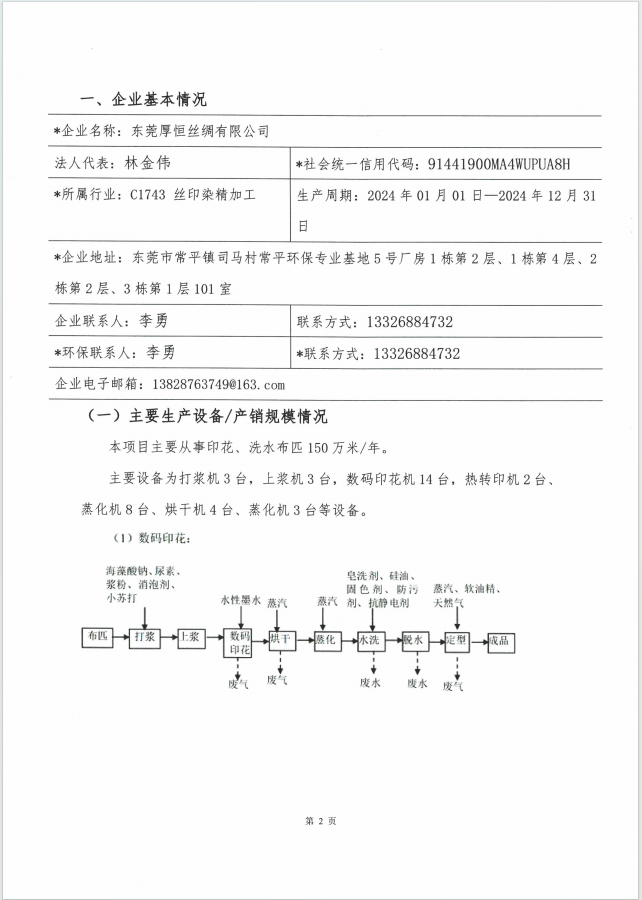 關于東莞厚恒絲綢有限公司自行監測方案