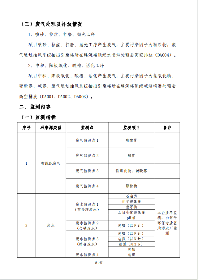 關于東莞市朗淞金屬表面處理有限公司自行監測