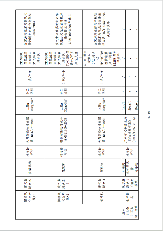 關于東莞冠捷金屬表面處理有限公司自行監測方
