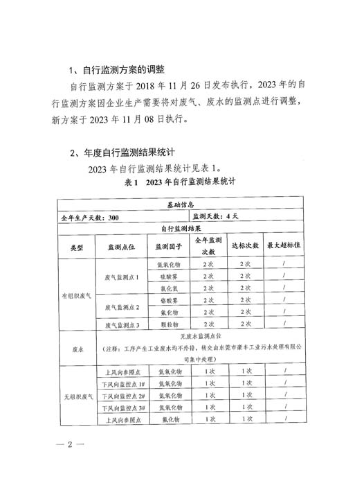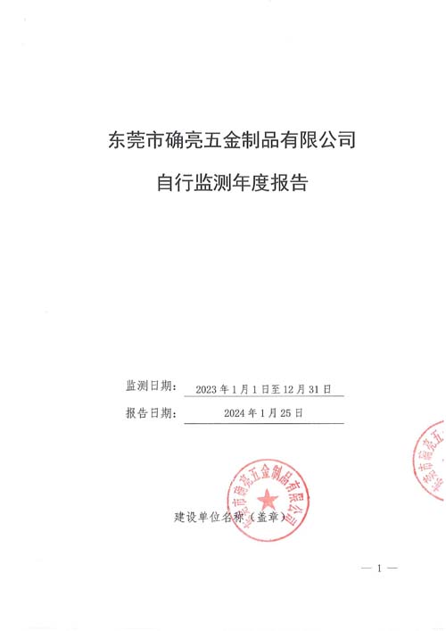 東莞市確亮五金制品有限公司自行監測年報2023年
