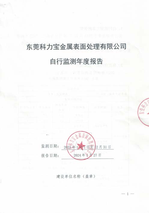 東莞科力寶金屬表面處理有限公司自行監(jiān)測年報