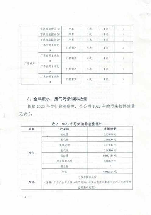 東莞市確亮五金制品有限公司自行監(jiān)測年報2023年
