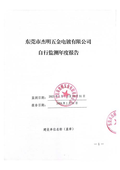 東莞市杰明五金電鍍有限公司自行監測年度報告