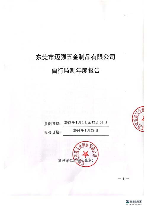 東莞市邁強(qiáng)五金制品有限公司2023年自行監(jiān)測年報(bào)