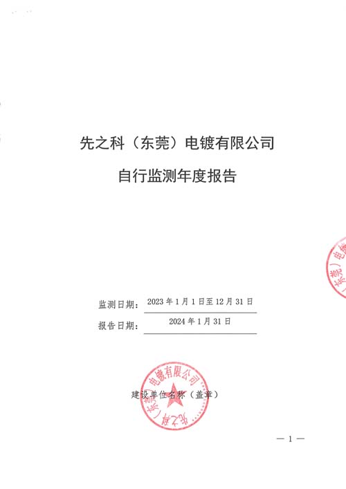 先之科(東莞)電鍍有限公司2023年自行監(jiān)測年報