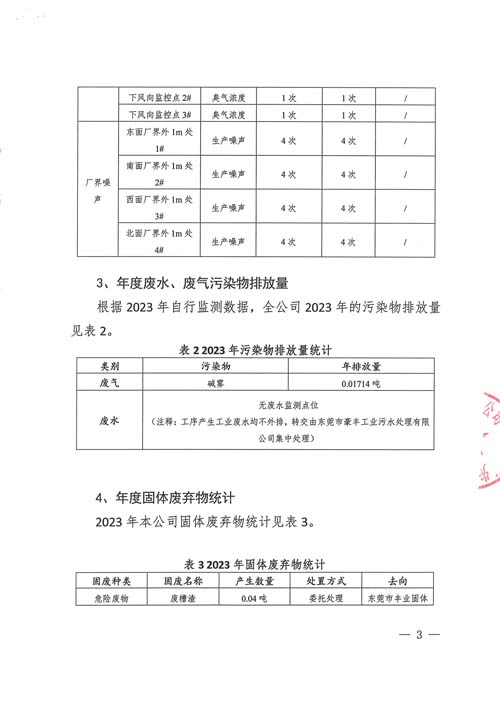 東莞市榮駿金屬制品有限公司2023年自行監(jiān)測年報