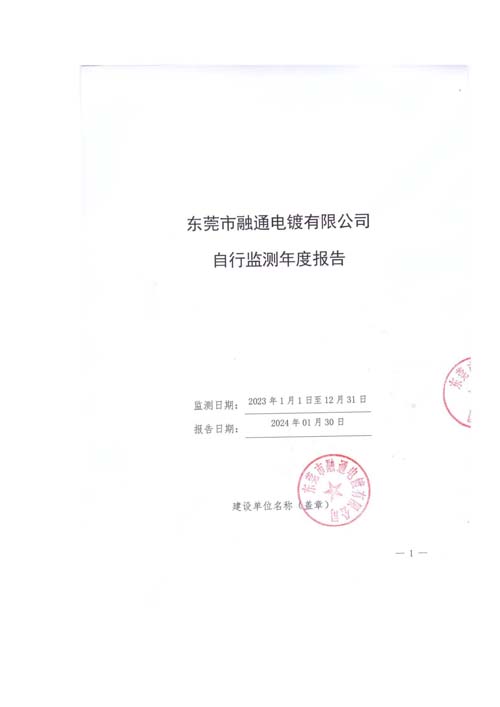 東莞市榮駿金屬制品有限公司2023年自行監測年報