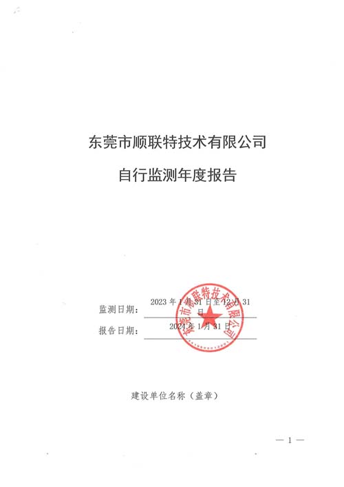 東莞市順聯(lián)特技術有限公司2023年自行監(jiān)測年報