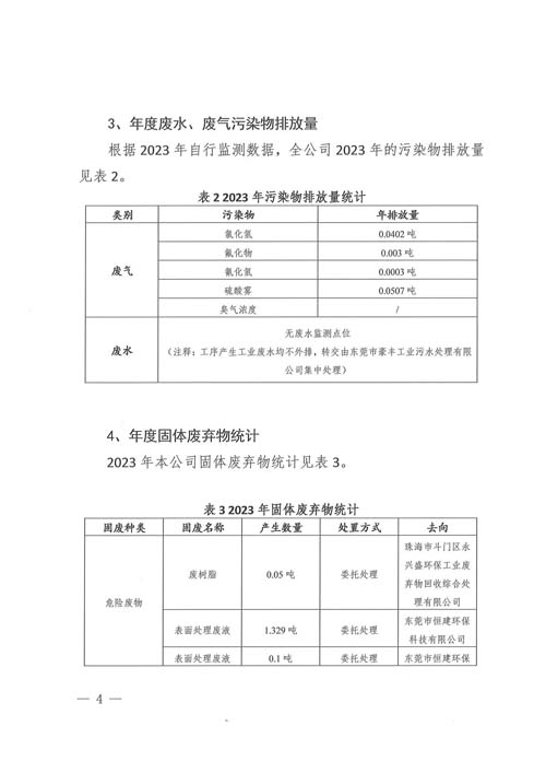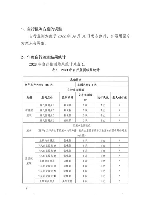東莞市萬晟復合材料有限公司2023年自行監(jiān)測年報