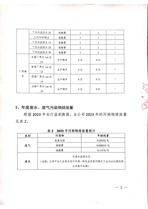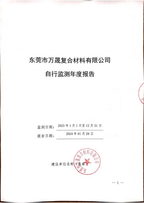 東莞市萬晟復合材料有限公司2023年自行監測年報