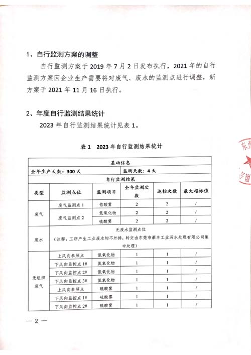 東莞市伍聯五金制品有限公司2023年自行監測年報