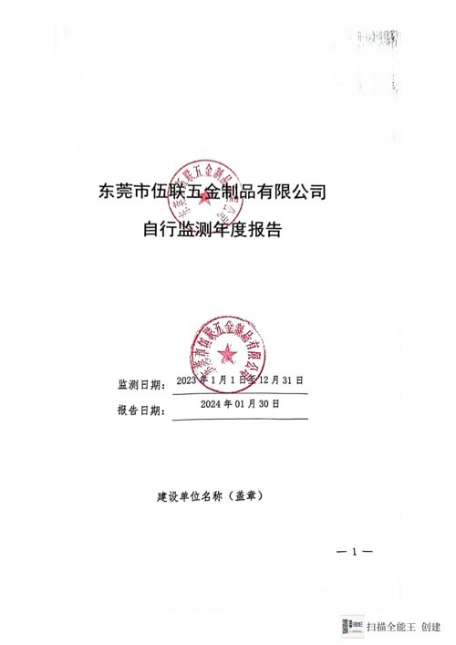 東莞市伍聯(lián)五金制品有限公司2023年自行監(jiān)測年報(bào)