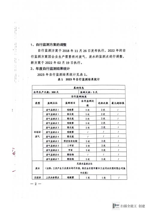 東莞市萬晟復(fù)合材料有限公司2023年自行監(jiān)測年報(bào)