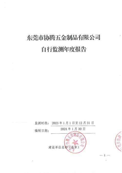 東莞市協(xié)騰五金制品有限公司2023自行監(jiān)測(cè)年報(bào)