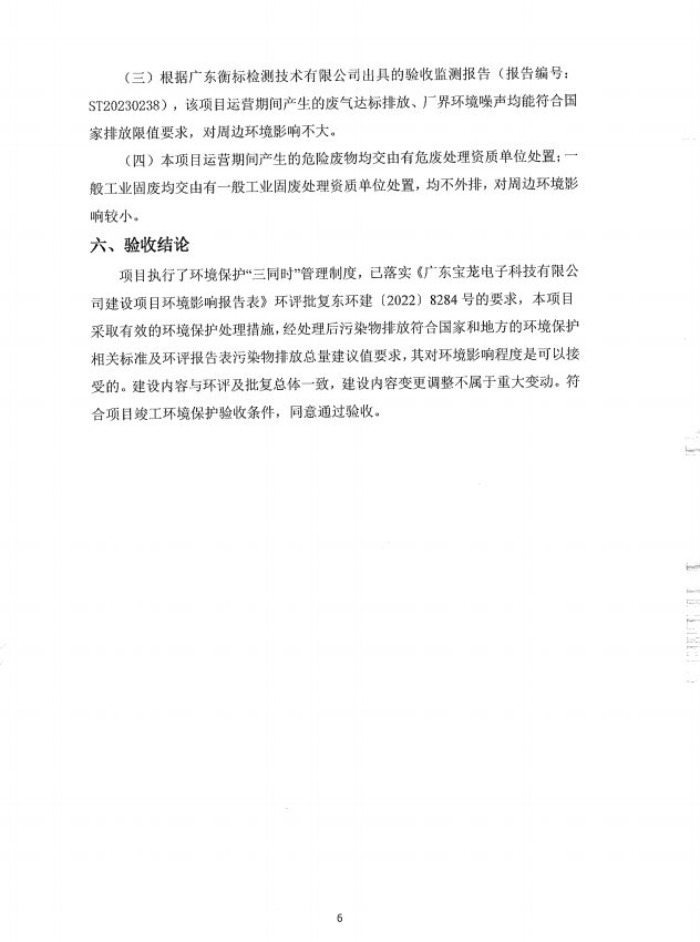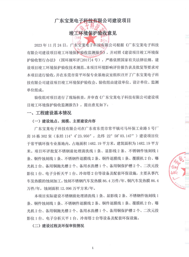 廣東寶蘢電子科技有限公司驗(yàn)收意見