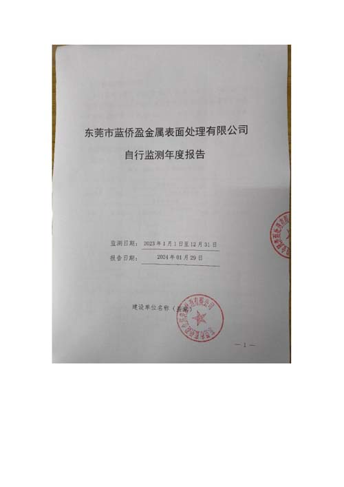 東莞市藍僑盈金屬表面處理有限公司2023年報告