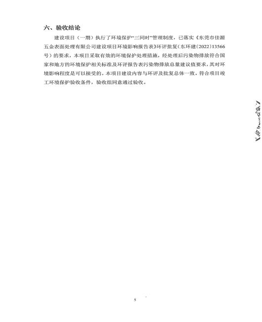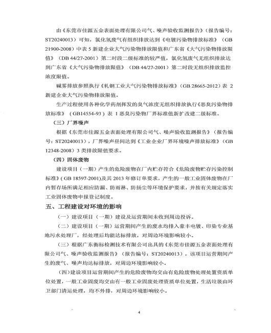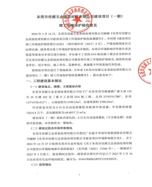 東莞市佳源五金表面處理有限公司建設(shè)項目驗收