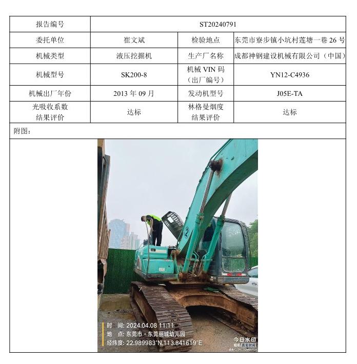 崔文斌SK200-8挖掘機(jī)非道路機(jī)動(dòng)車尾氣檢測(cè)