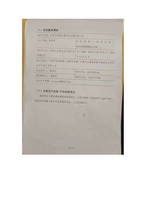 東莞市捷耀金屬表面處理有限公司24年方案