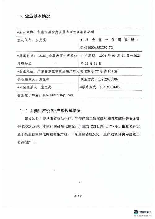 東莞市盛寶龍金屬表面處理有限公司24年方案