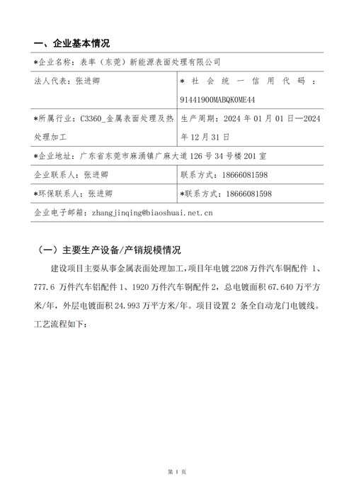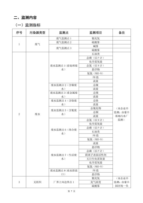 表率新能源表面處理有限公司24年自行監(jiān)測方案