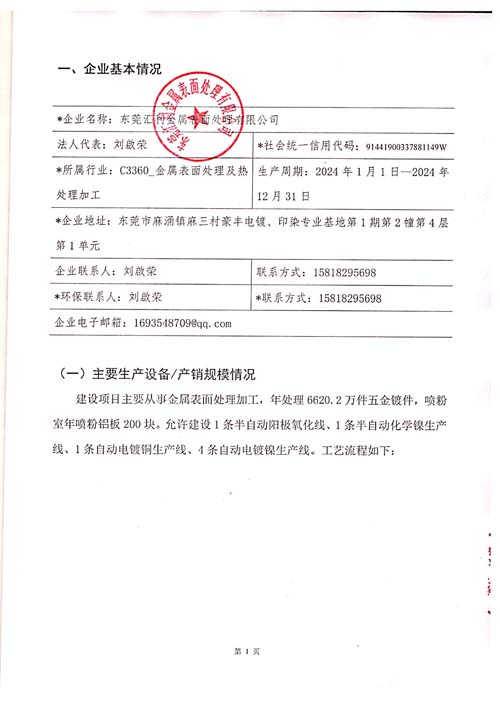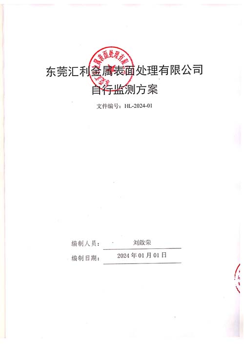 東莞匯利金屬表面處理有限公司24年自行監測方案