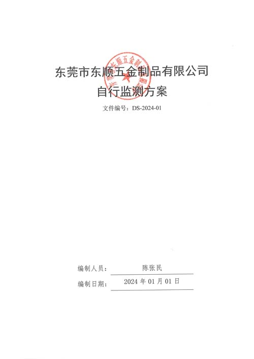 東莞市百田五金制品有限公司24年自行監測方案