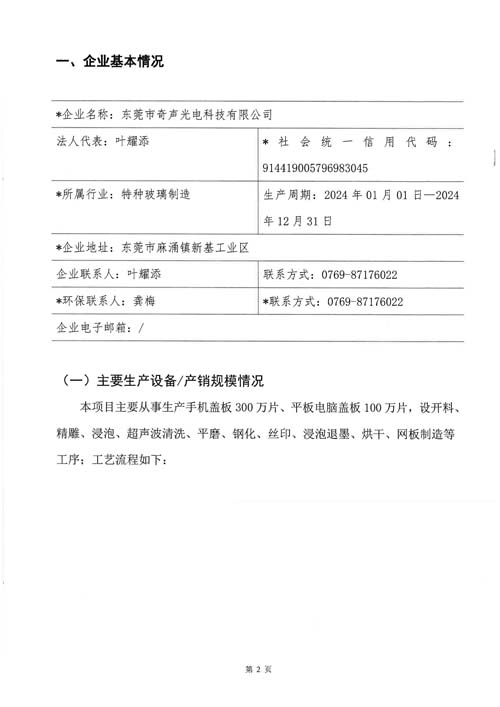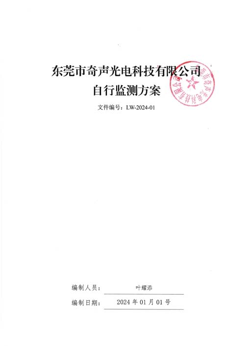 東莞市奇聲光電科技有限公司2024年自行監測方案