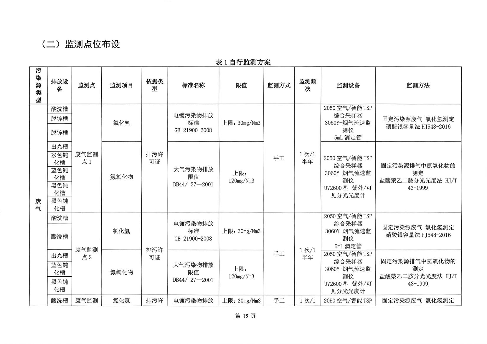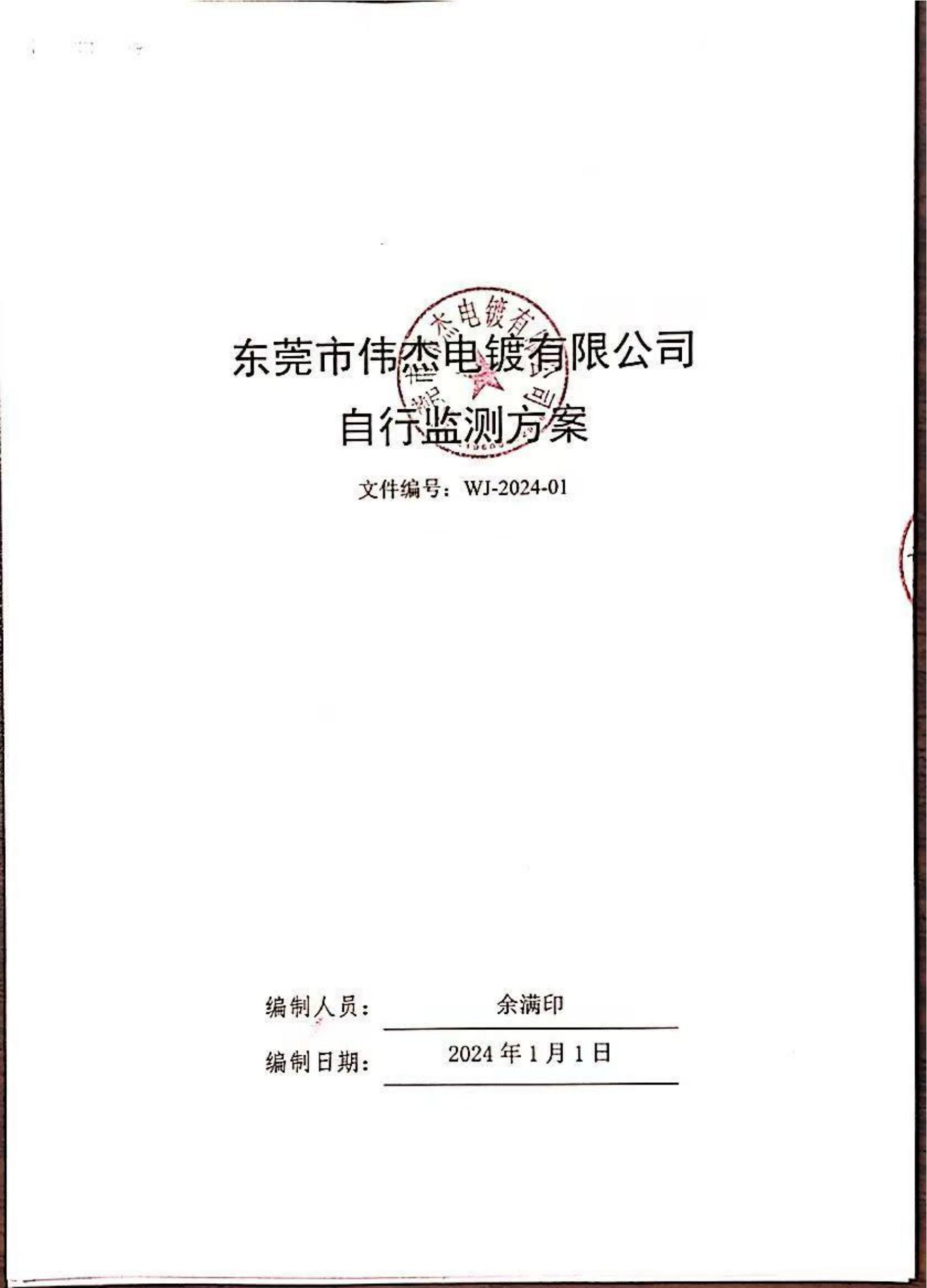 東莞市偉杰電鍍有限公司2024年自行監(jiān)測方案