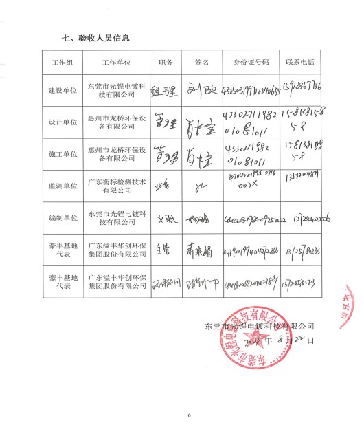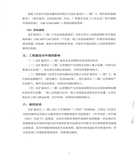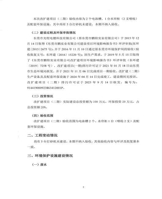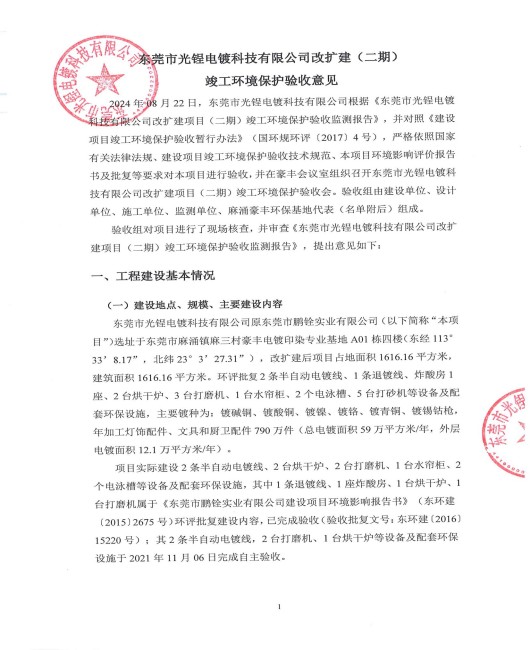 東莞市光锃電鍍科技有限公司改擴建(二期)驗