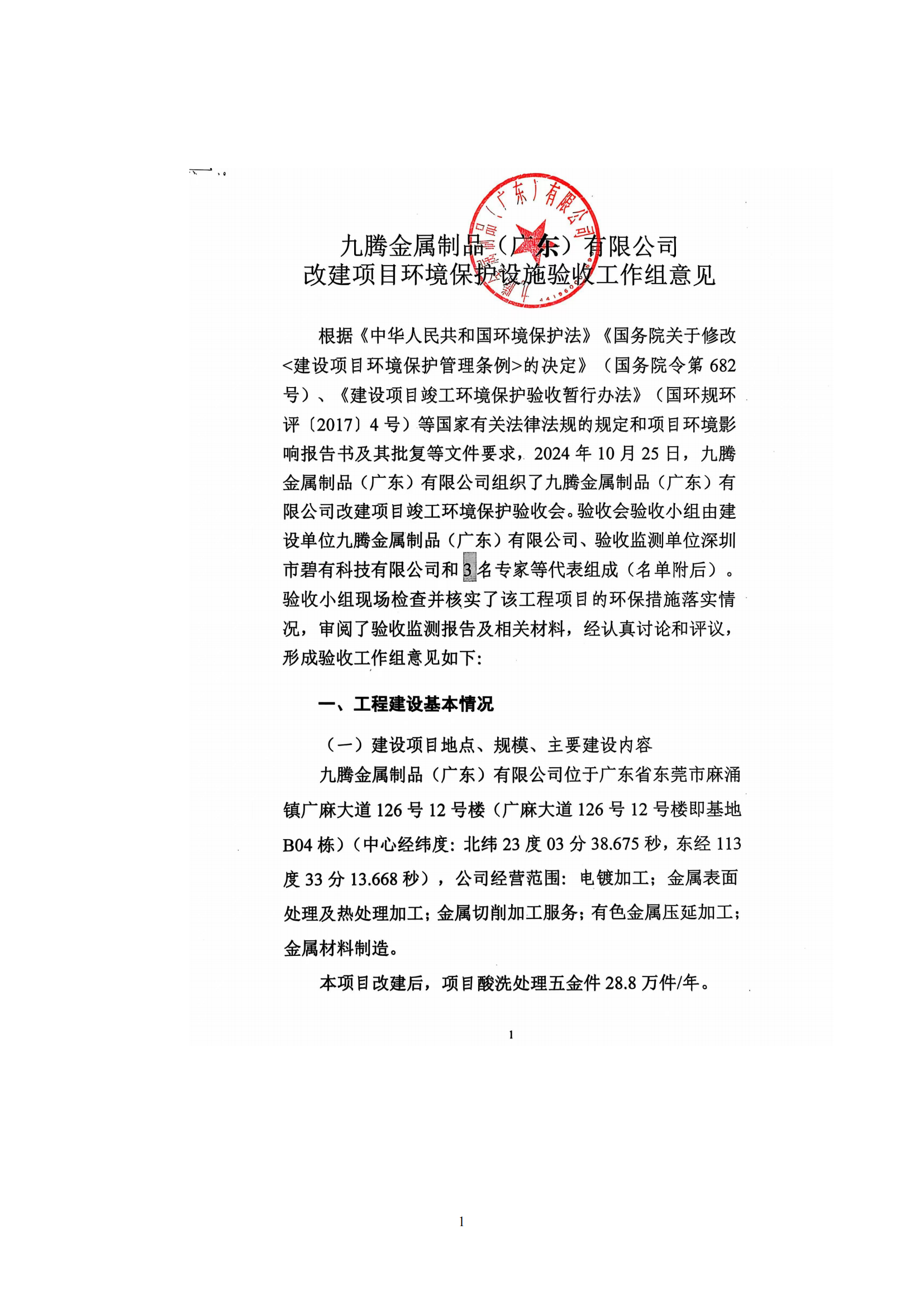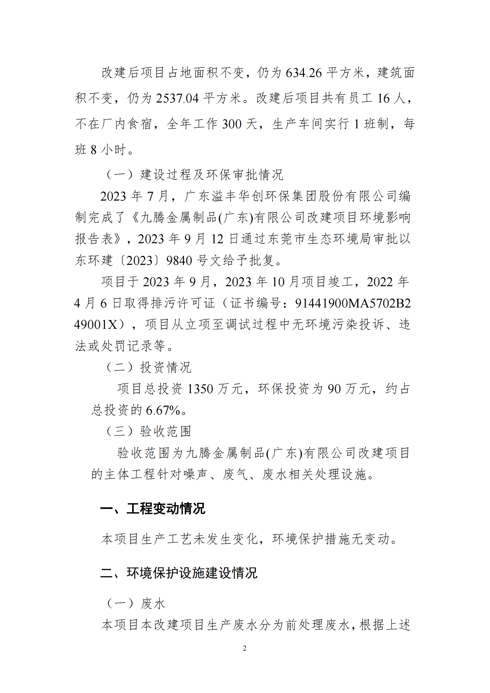 九騰金屬制品(廣東)有限公司改建項目環(huán)境保
